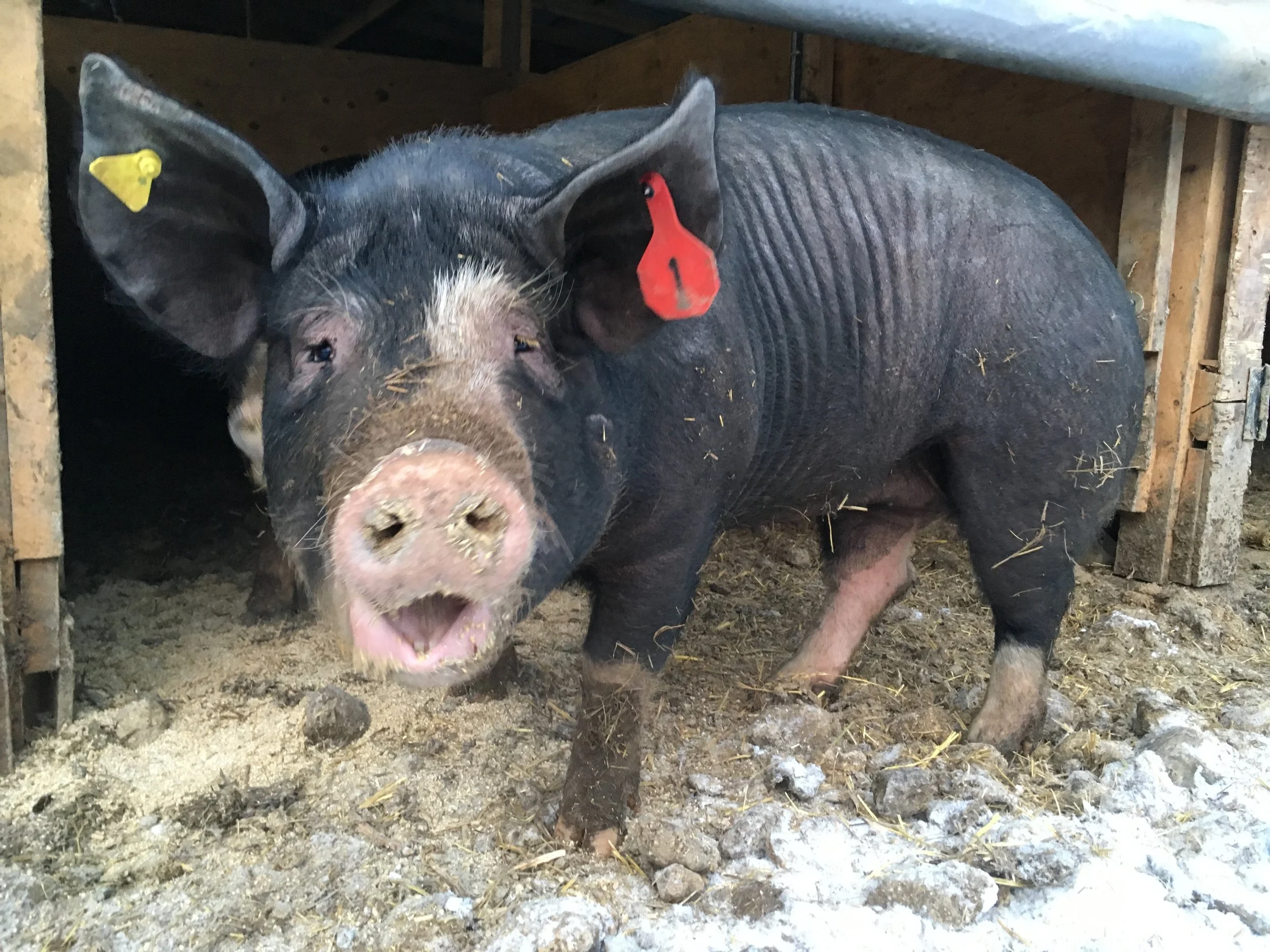 We have good relationships with most of our pigs, they let us handle them and their babies with no problem. Several of our older sows however are not as easy to work with, and once they have babies they typically do not want us to come into their pens or anywhere near them or their babies. The sow giving birth today was one of those pigs. I found her this morning with five new piglets. She appeared to still be in labor but as the day progressed she did not birth any more piglets. I spent several hours watching her to try and figure out if she was still in labor and asked for second opinions from Goose because I was so unsure. As they day progressed however she seemed to be more exhausted and much more willing to allow me in to give her massages and check up on her hands on. I spent a long time rubbing her belly and backside, and as I continued to do so I got a sense that she was asking for my help. I kept asking Goose for is opinion and trying to rationalize her behavior hoping to avoid having to accept that she might really be in need of my help. However that sense that she needed me grew so strong that eventually I could not ignore her unspoken pleas any longer and I pulled on a glove to prepare for a task that I had only read about. A task I had previously determined was not a task I would ever choose to undertake. I figured if she truly did want my help she would allow me to help her, and if I was misreading her signals she would stop me immediately upon the next step.